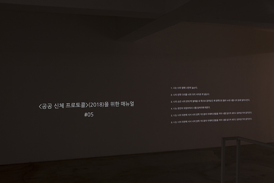 The first version of Public Body Protocol was produced in the Bosingak area in Seoul's Jongno district in 2015 and a second version with the amended manuals was produced in the area where the exhibition space Space Willing N Dealing is located.