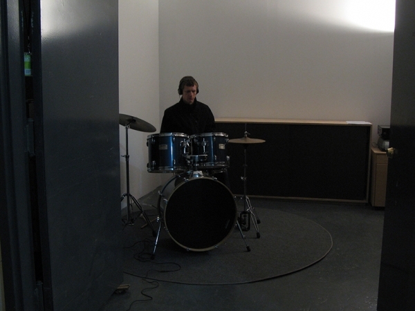 The project presents two percussionists sitting in separate spaces of gallery unable to see each other and hear each other clearly. They attempt to communicate musically while listening to an audible notation of the same score called "Recording From My Heart", heart beat generated score drawn from the artist's previous work, Staying Alive. The presence of another drummer complicates the given notation and provides a secondary score. The duo attempts to create a musical dialog (sometimes call-and-response, sometimes duet, etc) while overcoming the obstructions to the performance. The audience becomes a part of this challenging setting in role of listener/addressee as well as his or her body as another parameter to the performance that affects the drummers' dialogue. Eventually the performer and audience in the space form a ephemeral, musical statement together beyond the walls of exhibition space.